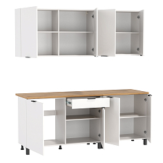 Переехали в частный дом, кухня небольших размеров, хотелось использовать практично каждый см. Решила добавить к имеющемуся, еще один маленький угловой стол. Быстро нашла в Олмеко шкаф-стол, подходящий по высоте, глубине и цвету. Оплатила картой, выслали на следующий день, доставил курьер. Все целое, ни царапин, ни сколов, фурнитура качественная. Шурупы, ножки, заглушки, петли все было в упаковке, ничего не потерялось, некоторые запчасти после сборки остались, производитель положил с запасом. Собирали всей семьей по инструкции, чуть повозились с регулировкой дверцы, а так в принципе, справились быстро. Качество материалов отличное, полочки ровные. Нет посторонних запахов. Не нарадуюсь, спасибо!