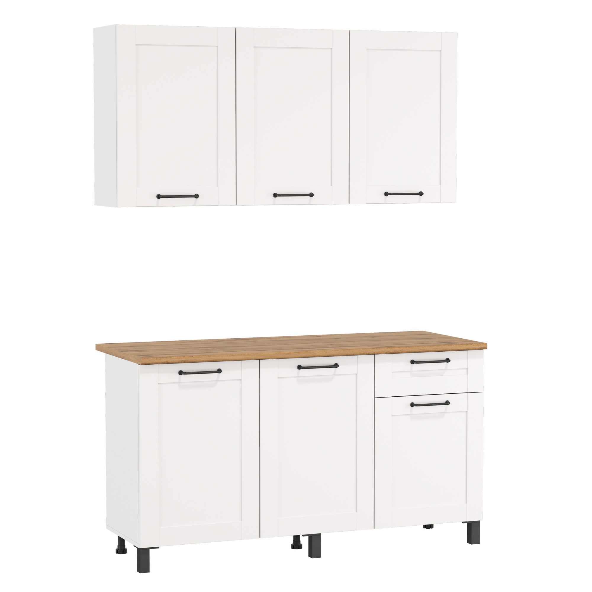 Шкаф Аризона (1500) (белый / столешница: дуб вотан / ДВПО: белый / профиль: ПВХ белый О) исполняется в классическом стиле и спокойных цветах. Модель сочетает в себе простоту и функциональность, но при этом не выглядит громоздко. Она гармонично впишется в пространство, не утяжеляя его.
