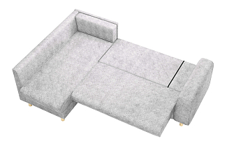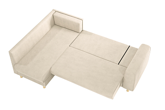 Купили диван угловой в зал, комната преобразилась сразу же, цвет очень удачный. Материал велюр, надеюсь прослужит долго. Удобные сиденья и спинка, в меру мягкий, лежать и сидеть очень комфортно. Раскладывается легко, спальное место просторное, как полноценная 2х-спальная кровать. Сбоку вместительный выдвижной ящик-поместились все игрушки ребенка. Спасибо, вся семья довольна покупкой.
